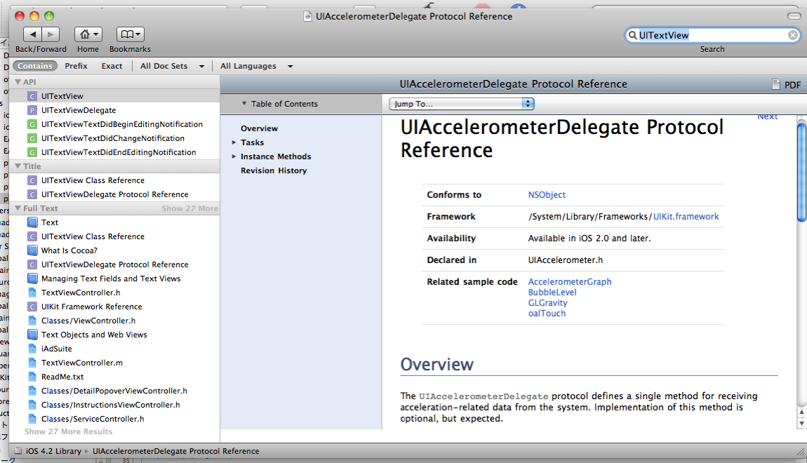 XCodeではデベロッパドキュメントと読んでいるらしい。