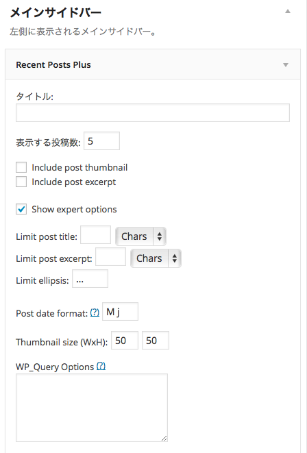 インストールの参考 /var/www/wordpress 以下に作成したとして話を進める。 カスタマイズの参考 好きなテンプレートを探して使ってもいいけど、やっぱ自分で作りたいよね。 プラグインを入れてみる まずは参考になるかと一つプラグインを入れてみた recent-posts-plus これは、最近の投稿をサイドバーに出すことができるプラグイン。カテゴリーやタグを選んで表示できるとかの機能がある。 READMEを読むと、以下の場所にファイルを置けばいいらしい。 /var/www/wordpress/wp-content/plugins/recent-posts-plus.php サイト名にマウスオーバー→ウィジェット の項目を選ぶと、確かに追加されている。 設定すると、ブログページのサイドバーにRecentPostが表示された。 自作への道 じゃあ、自分で作ってみよう。 ウィジェットを作るのに必要なコードは何か。 ここが詳しい。 Codex 要するに3つの関数を定義する必要があって、 - widget() 実際のウィジェットのコンテンツを出力する。つまり、実際のブログページに出力するhtml文をechoする関数。 - update() 設定の保存を処理する。つまり、ウィジェット画面の設定を保存するボタンを押したときに走る処理。 - form() 設定フォームを出力する。つまり、ウィジェット画面のhtml文をechoする関数。 という訳だ。 自作のウィジェットクラスは、WP_Widgetを継承して作ることになっている。